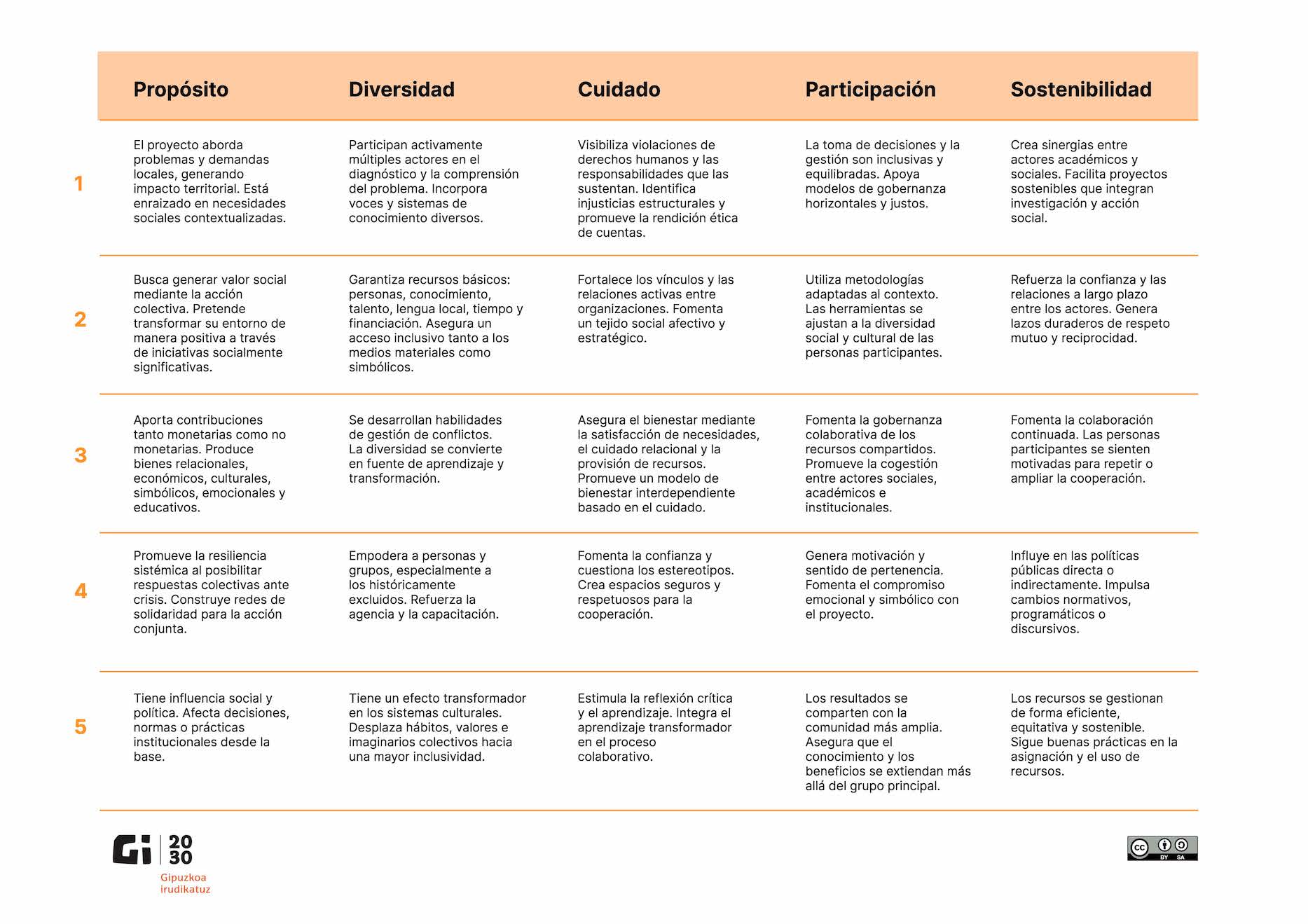 Esto significa que cualquier organización puede utilizarla, adaptarla, traducirla, incorporarla a sus propias herramientas o incluir su logotipo, siempre que reconozca su origen en la Comunidad de Aprendizaje y Práctica Gi2030.